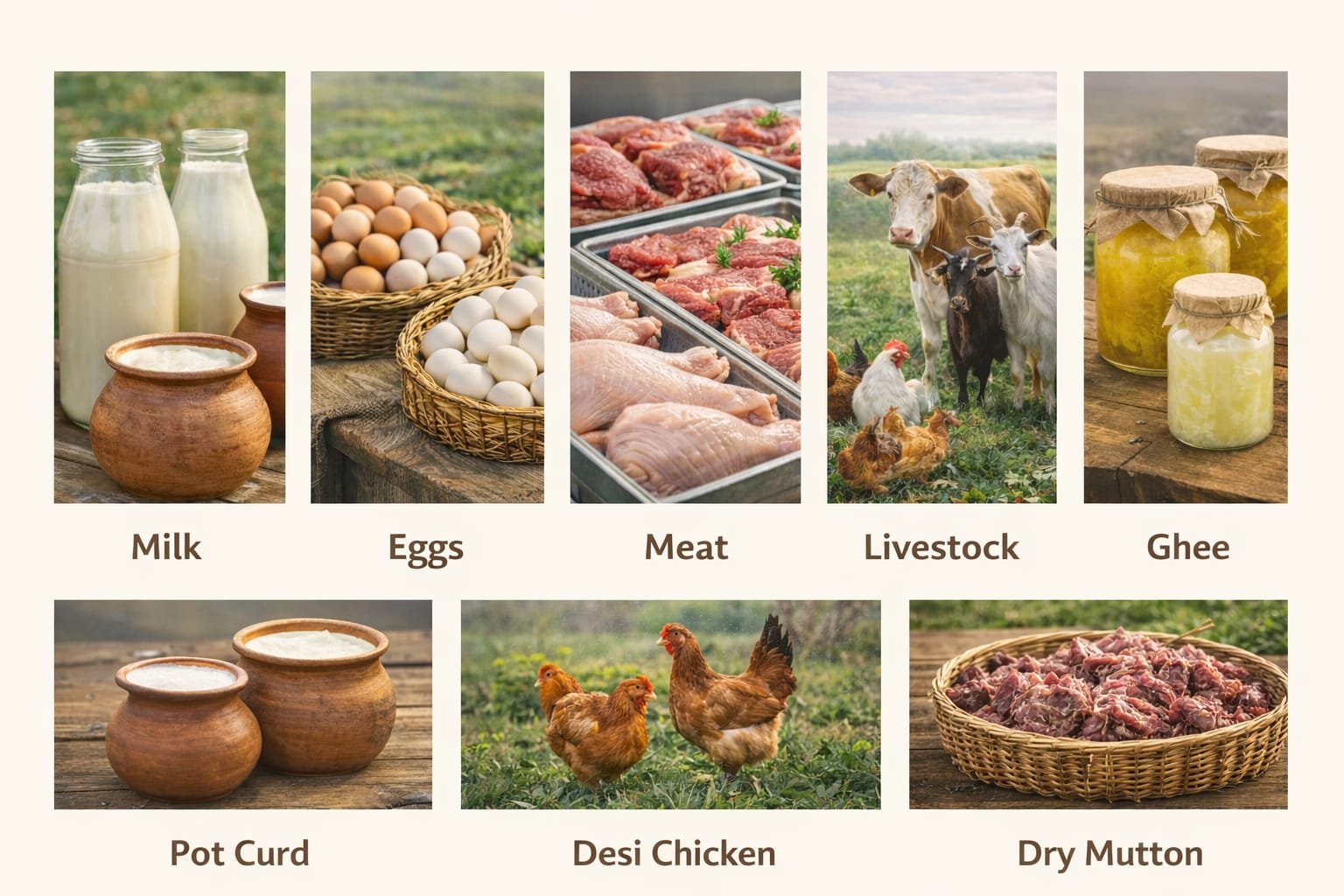 We supply fresh, budget-friendly daily essentials including milk, eggs, and meat directly to households, ensuring every family has access to safe, nutritious, and hygienic food products